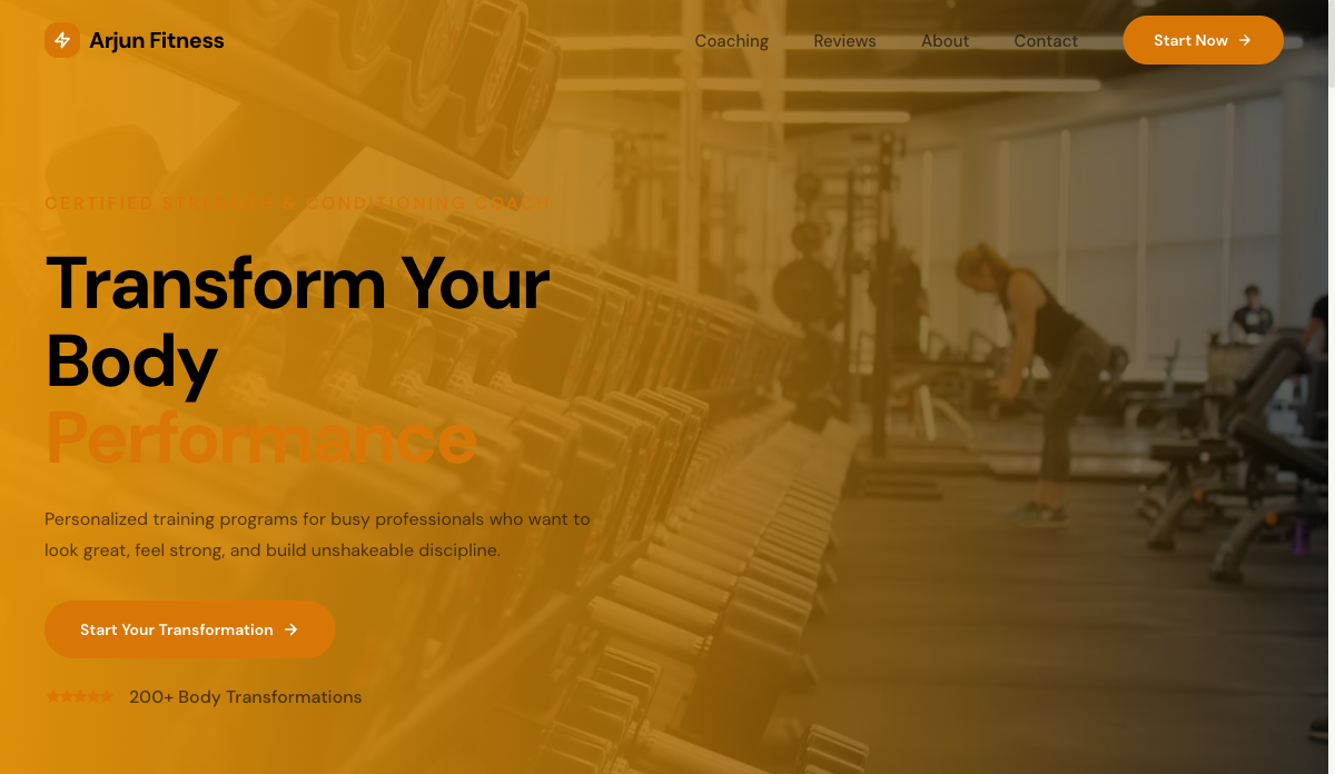 Multi-page gym with virtual tour, programs, trainers, workout videos, blog, and newsletter.